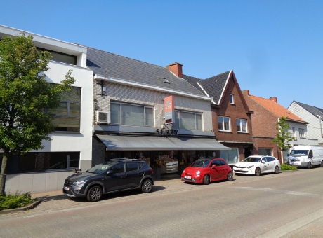 Modern en ruim handelspand / kantoorpand bestaande uit wachtzaal, open handelsruimte, 4 burelen, technische ruimte, kluiszaal, berging, keuken, wc’s.