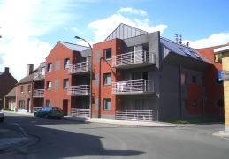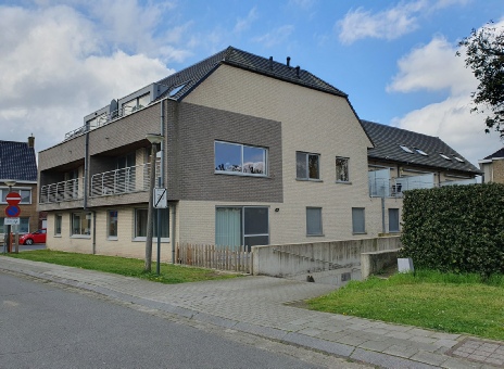 Modern nieuwbouw appartement bestaande uit inkom, living, 2 terrassen(1 overdekt), moderne ingerichte keuken met berging, nachthall, wc, badkamer, 2 slaapkamers, afzonderlijke berging in de kelder.